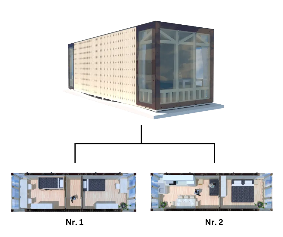 All our houses can be easily interconnected and customized in size, with windows on one side, both sides, or without windows, to suit your preferences.
